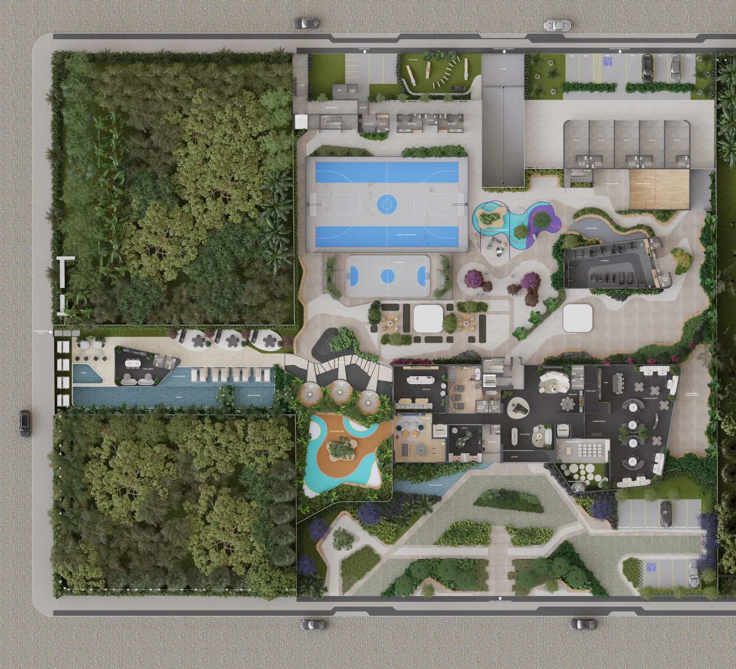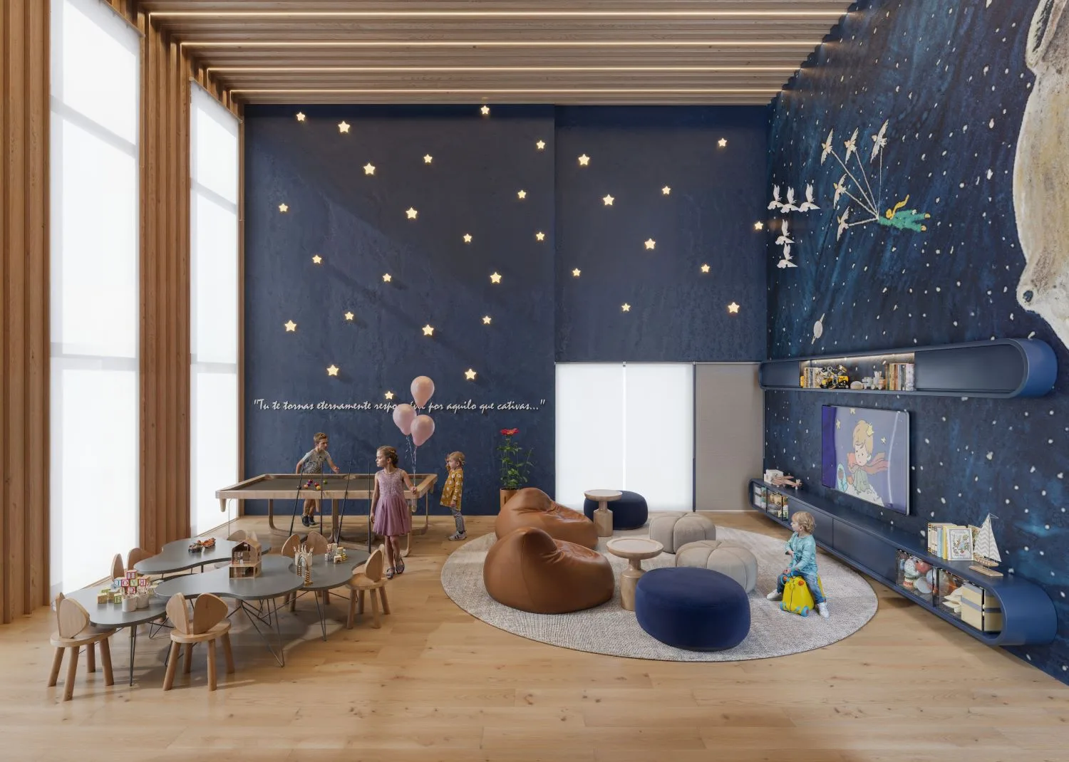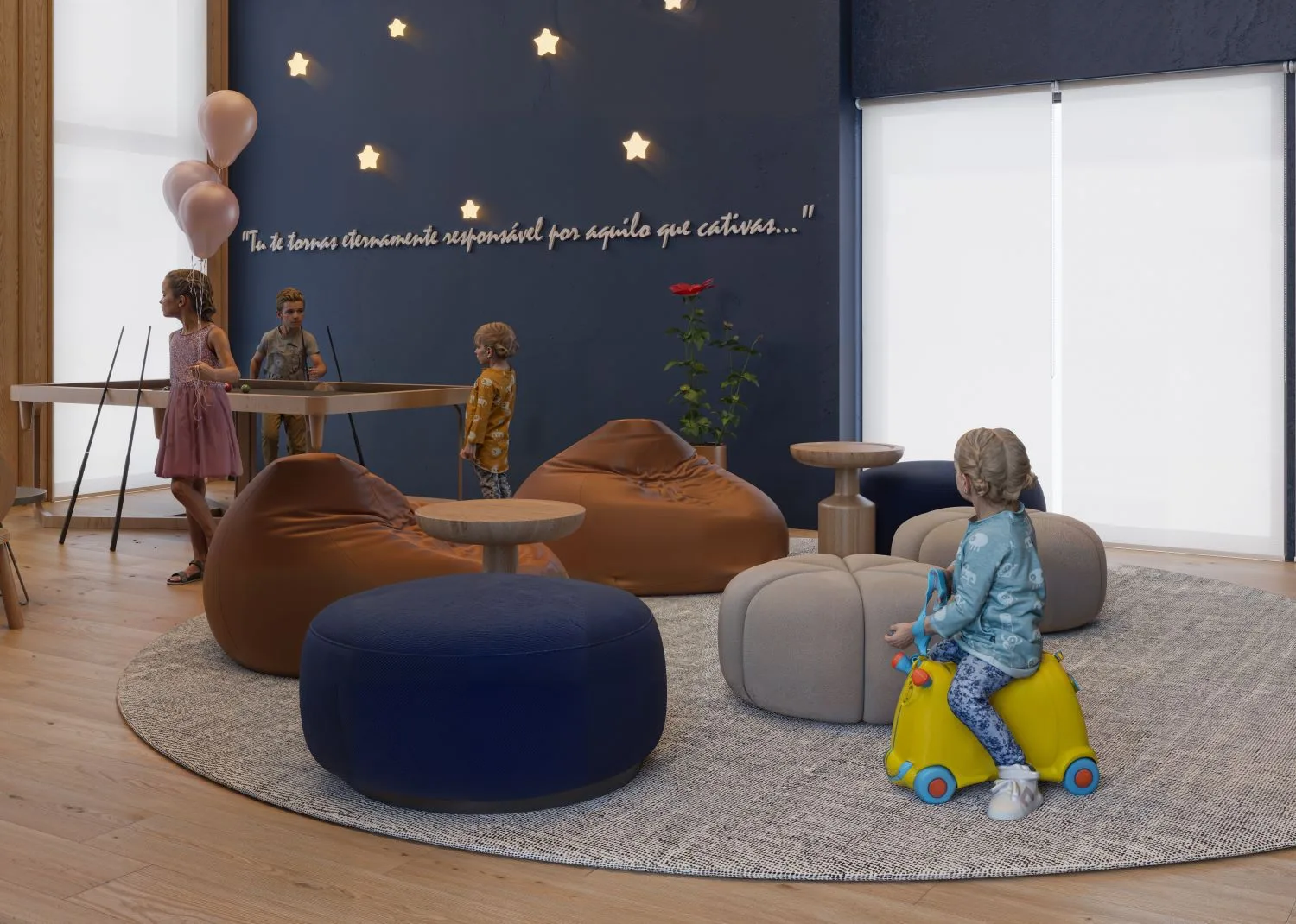 A distribuição dos espaços comuns foi cuidadosamente pensada para traduzir um conceito de arquitetura formal, sofisticada e atemporal, oferecendo mais de 20 itens de lazer e comodidades para toda família.