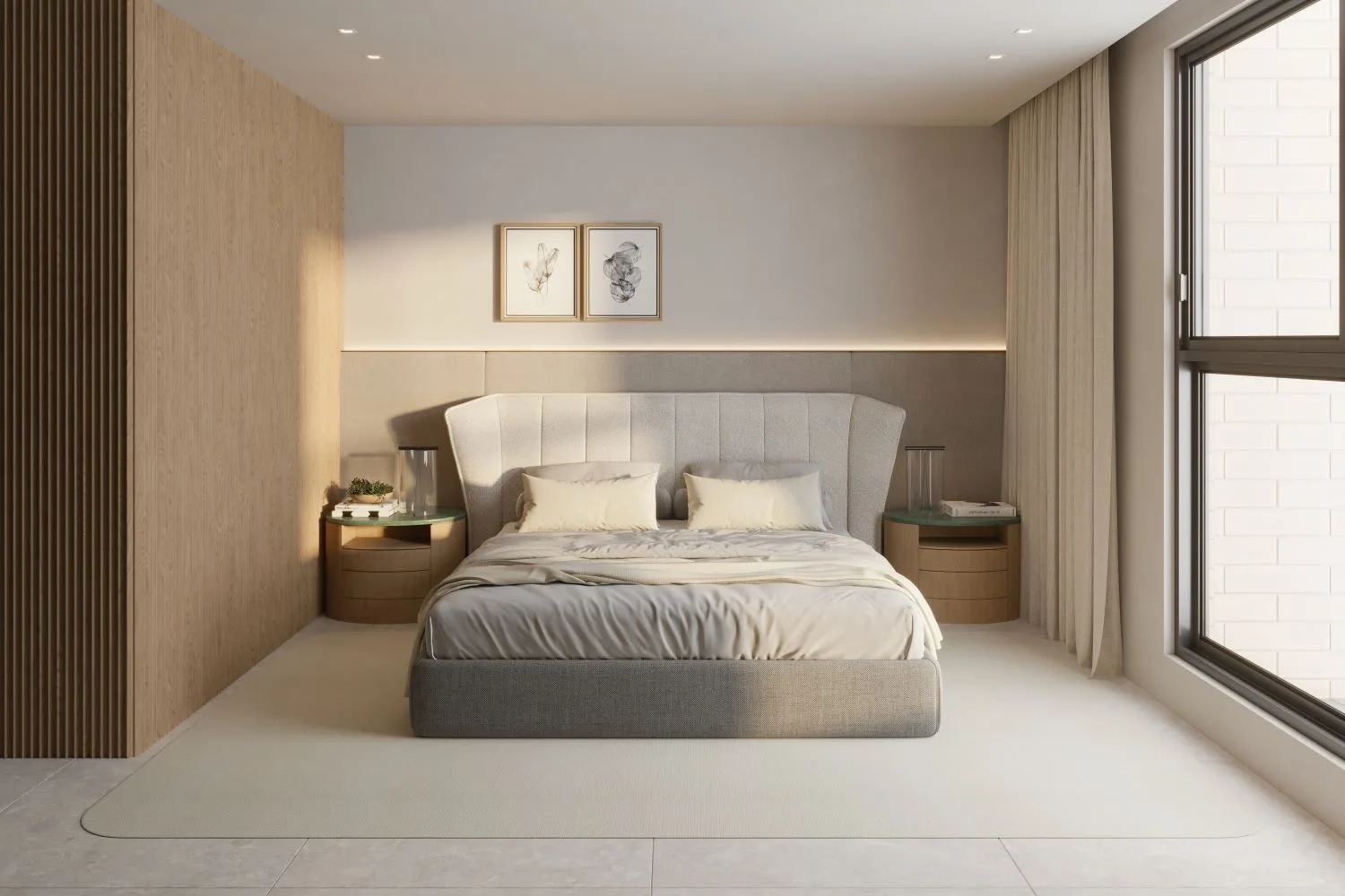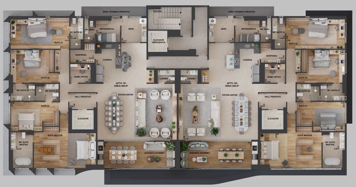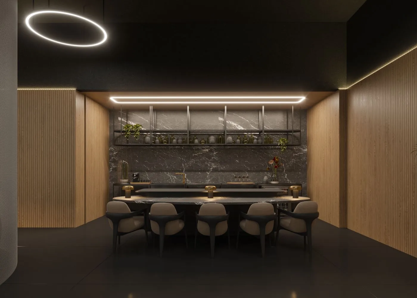 A distribuição dos espaços comuns foi cuidadosamente pensada para traduzir um conceito de arquitetura formal, sofisticada e atemporal, oferecendo mais de 20 itens de lazer e comodidades para toda família.
